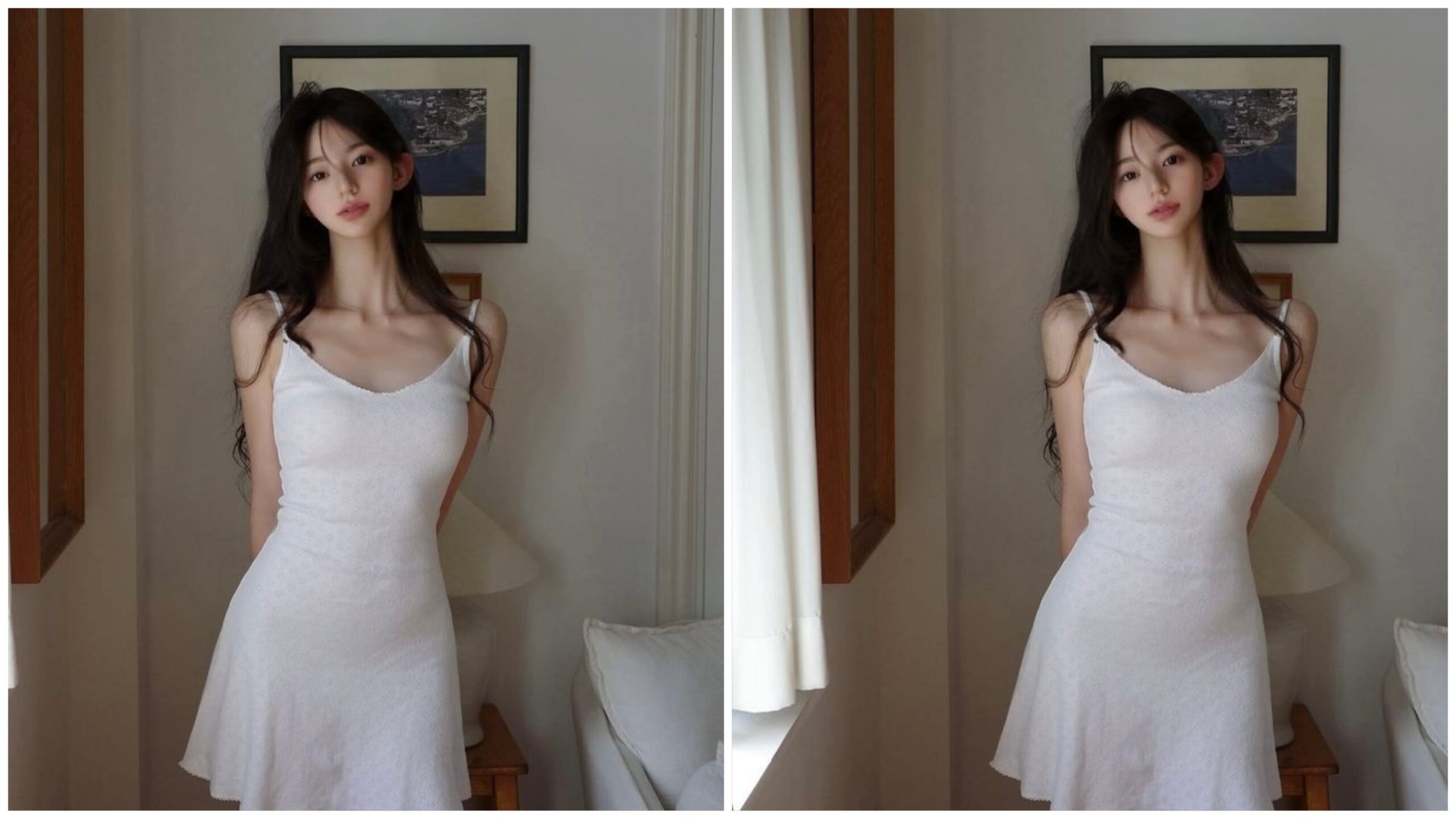 နန်းဆောင်ထဲမှလွတ်လွတ်လပ်လပ်စံနေချိန်ဖြစ်သောကြောင့်ကျောလည်အထိရှည်လျားသောနက်မှောင်သောဆံကေသာကိုဖြန့်ချထားပြီး
